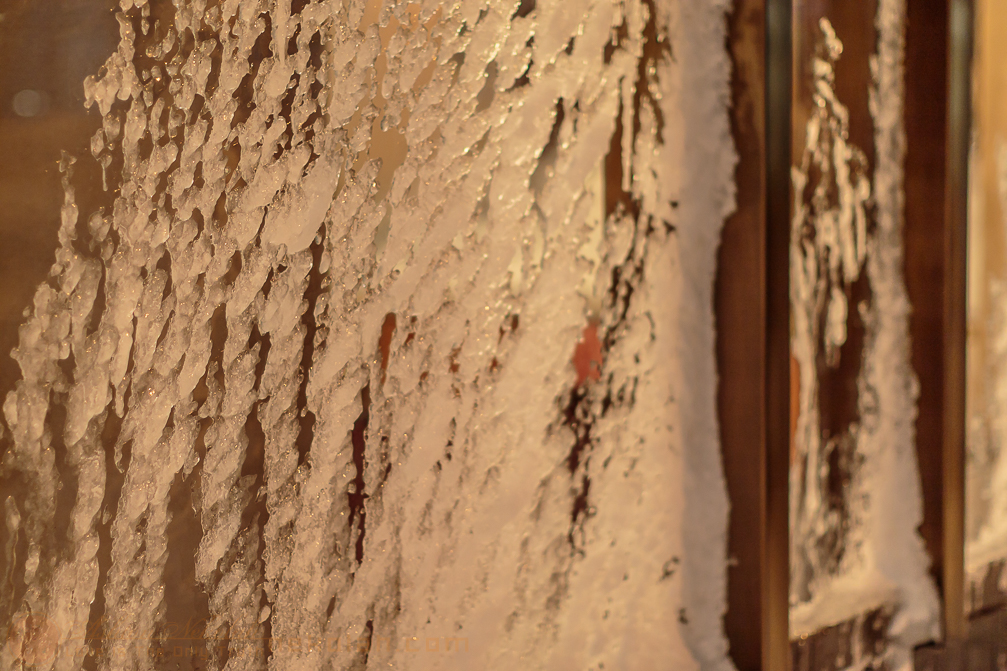 Frozen ice-covered windows make looking through anything difficult. (#)
