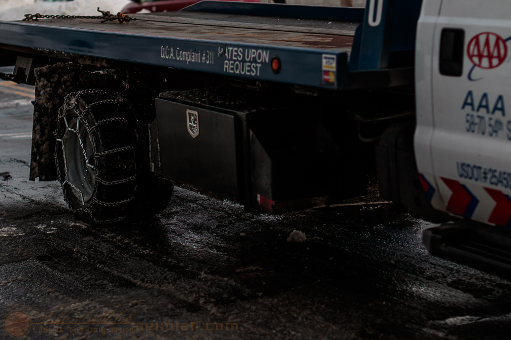 Chains make for extra traction when the streets are heavily paved in snow. (#)
