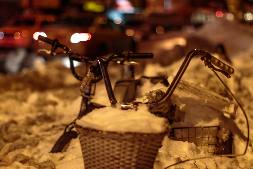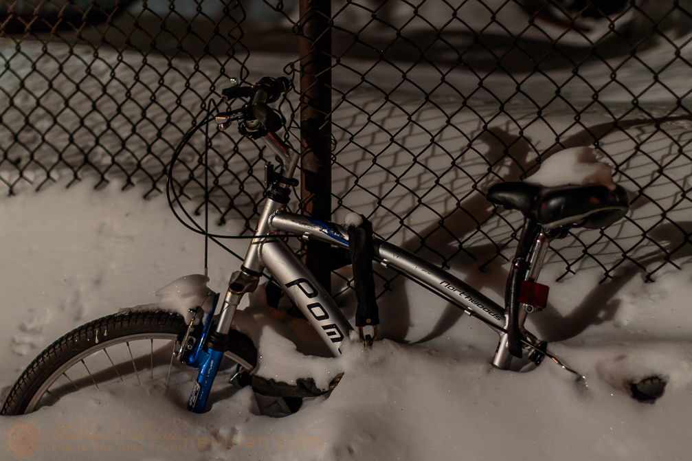 Parked bicycle are covered deep. (#)