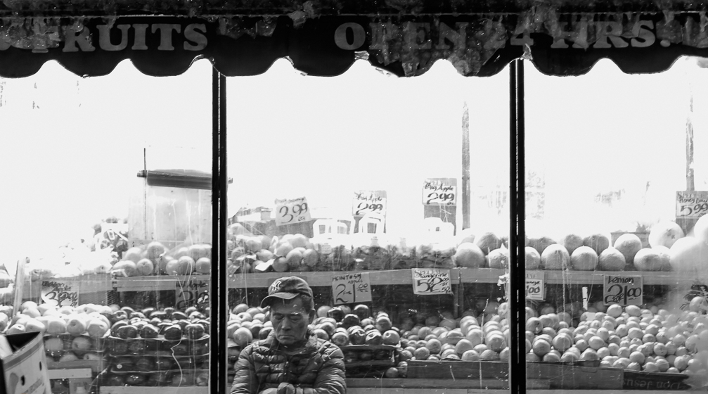 A Korean Man rests in cold when he should be a on looker for the store security. (#)