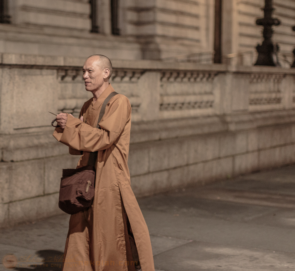 A Monk approaches a passer by. (