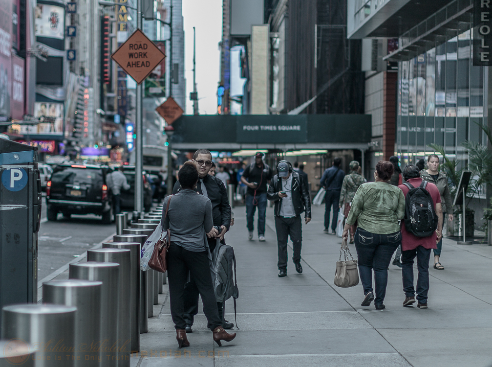 Times Square people on the road. (
