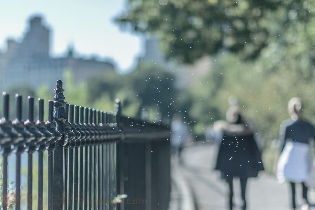 People walk as the path fills up with small flies. (