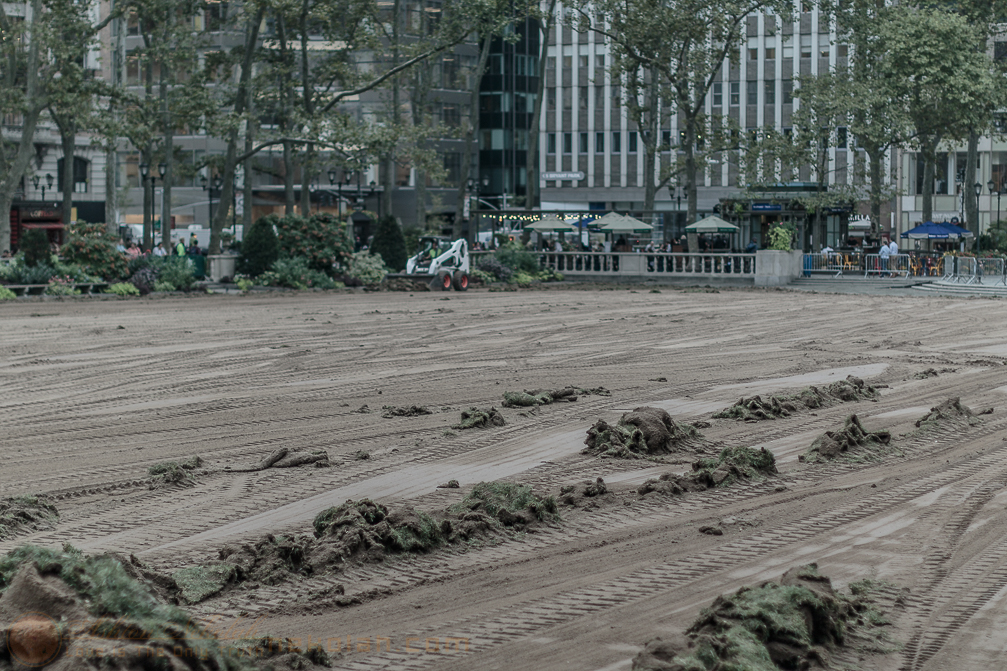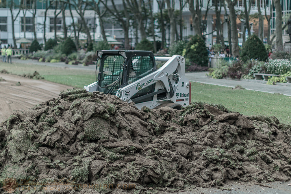Bryant Park being changed into the skating ring. (