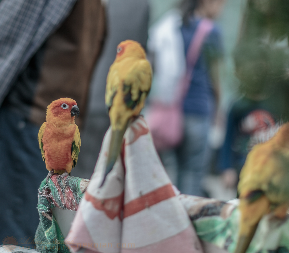 Small parrots are display. (